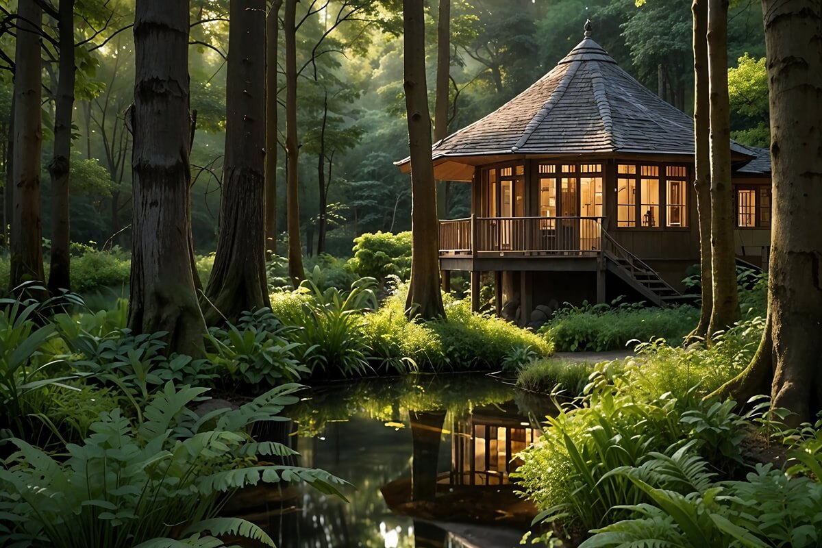 Escape into the serene woodland with private tents surrounded.
